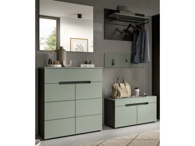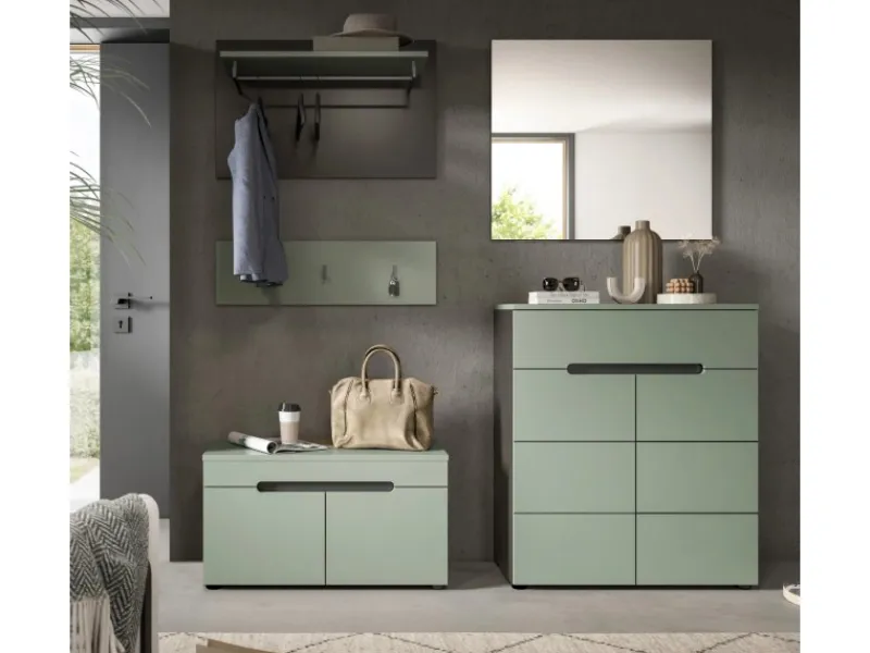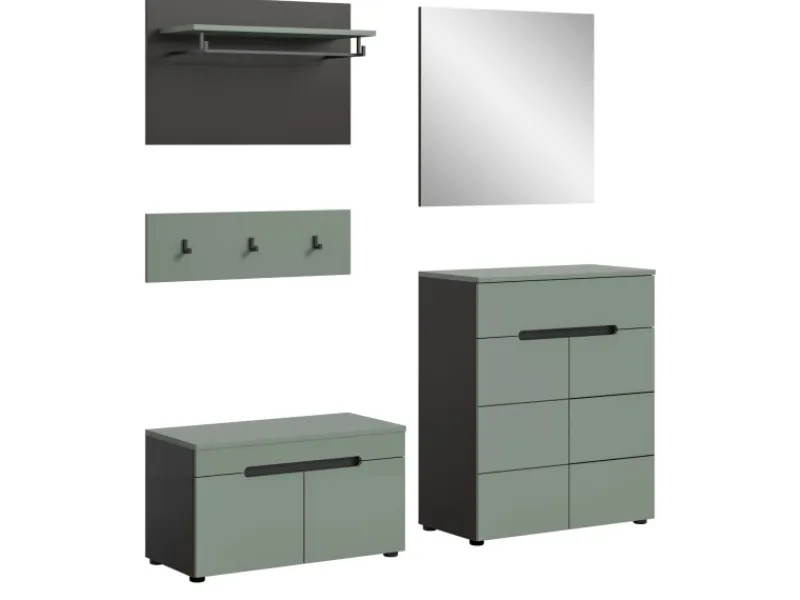 Garderobe „Cooper“ von Inn.Furn, 5-teilig, modernes Salbei Grün / Basalt Grau Design