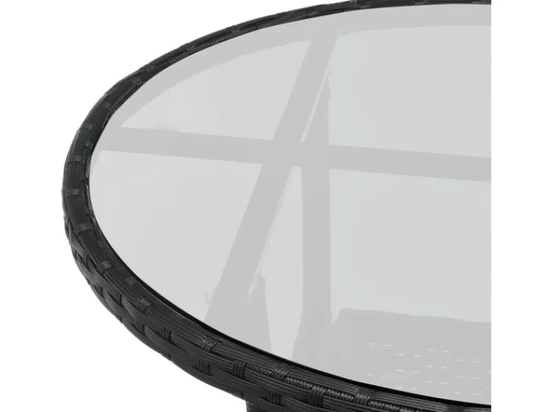 Inklusive ist ein 60 cm breiter Tisch mit einer schicken Glasplatte. Dieser bietet genügend Platz für ein gemeinsames Sonntagsfrühstück oder Cocktails am Abend. Die zugehörige Glasplatte ergänzt sich perfekt mit der geflochtenen Rattan-Optik. Das hochwertige Material sorgt zusammen mit den Querstreben für eine hohe Standfestigkeit.
