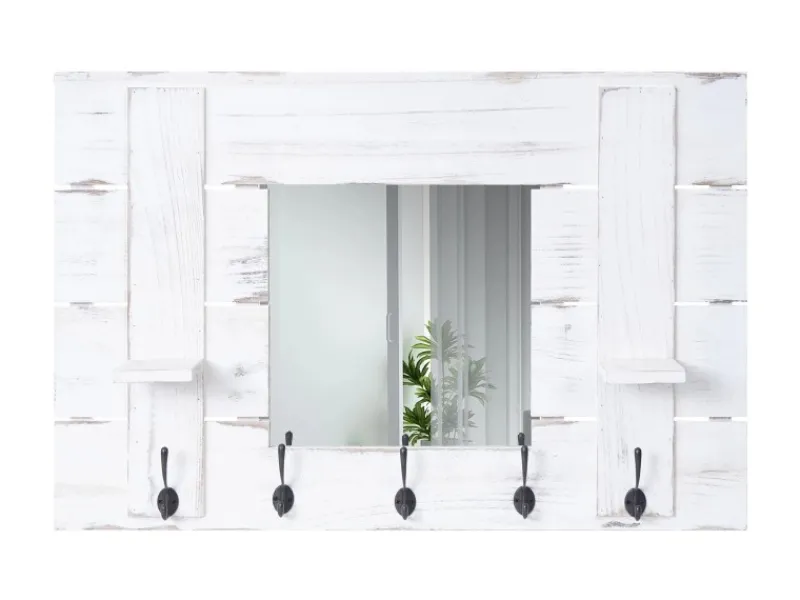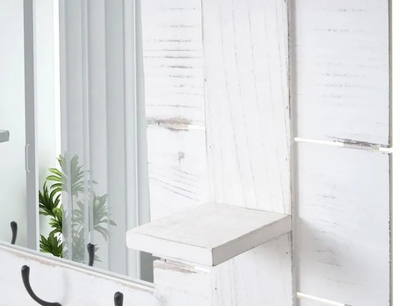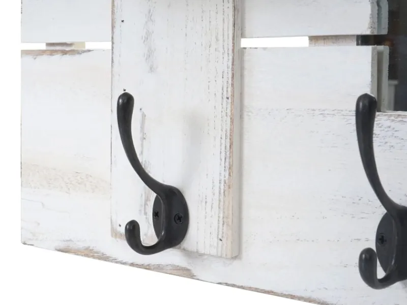 Sie wünschen von einer Wand mehr als nur Ihr Haus zusammen zu halten? Mit dieser Wandgarderobe können Sie jede Wand praktisch und dekorativ aufwerten! Durch den Shabby-Look wirkt jeder Flur, jede Diele oder auch das Schlafzimmer viel wohnlicher. Zwei kleine Ablageflächen und fünf Haken machen es möglich, Ihre Kleidung und Accessoires schnell greifbar und übersichtlich platzsparend unterzubringen.