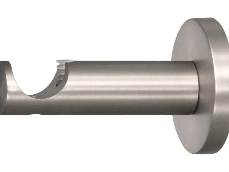 Die mydeco Gardinenstangen-Halterung Function unstreicht mit ihrem modernen Aussehen in Madentechnik jede Gardine. Der Träger in stilvoller Edelstahl-Optik ist aus aus hochwertigem Metall angefertigt und für alle Gardinenstangen mit einem Durchmesser von 2 cm geeignet. Er misst eine Gesamtlänge von 7,8 cm und einen runden Kopf von 4,9 cm.