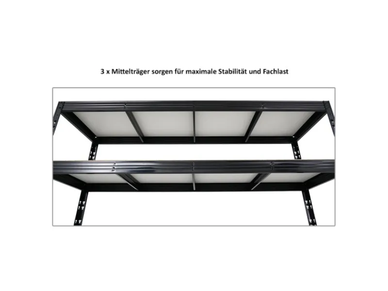 Starke Längsträger und 3 x Mittelträger sorgen für maximale Stabilität und Belastungskapazität.