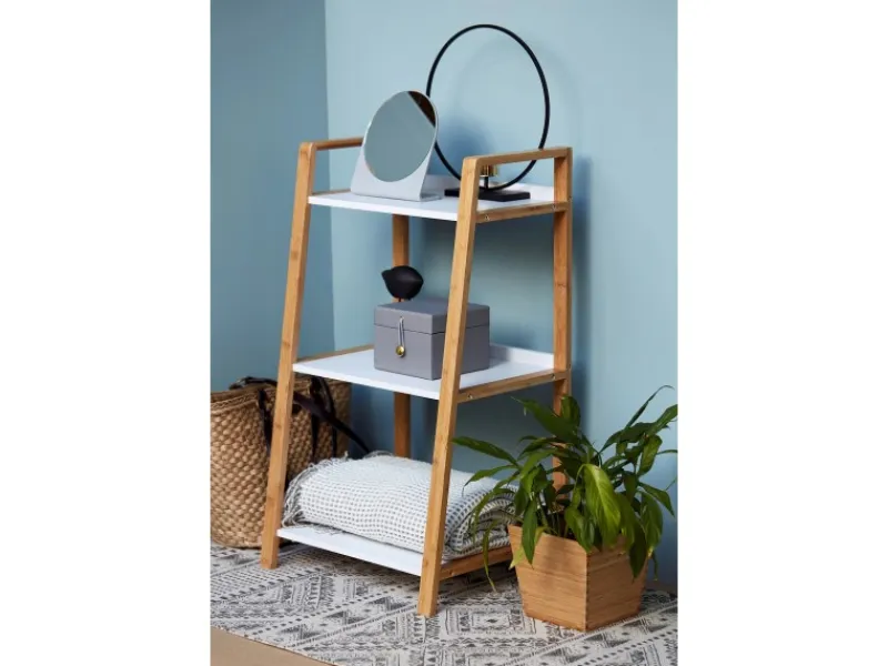 Das moderne Standregal Finja bietet mit seinen drei Regalböden viel Platz für Handtücher, Bücher, Küchenutensilien, Accessoires und Dekoration. Egal, wo Sie das charmante Haushalts- und Badregal platzieren, ob im Bad, Schlafzimmer, Flur, in der Küche oder im Wohnzimmer – das praktische Regal macht immer eine gute Figur und ist vielseitig einsetzbar.