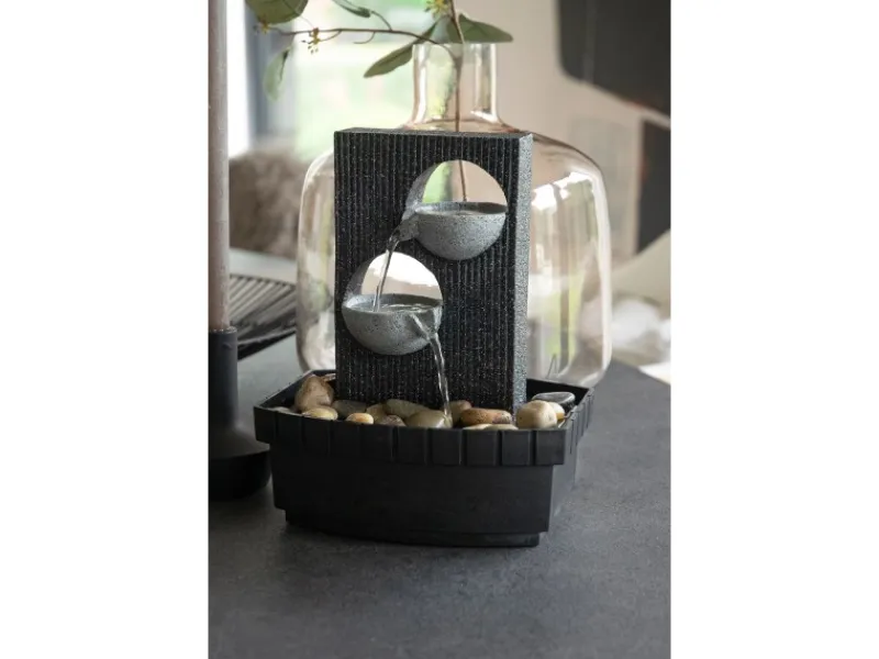 Gefertigt aus hochwertigem Polyresin (Kunststein), besticht er durch seine Langlebigkeit und einfache Pflege. Die laufruhige und zuverlässige Pumpe sorgt für einen kontinuierlichen und beruhigenden Wasserfluss, der eine entspannende Atmosphäre schafft.