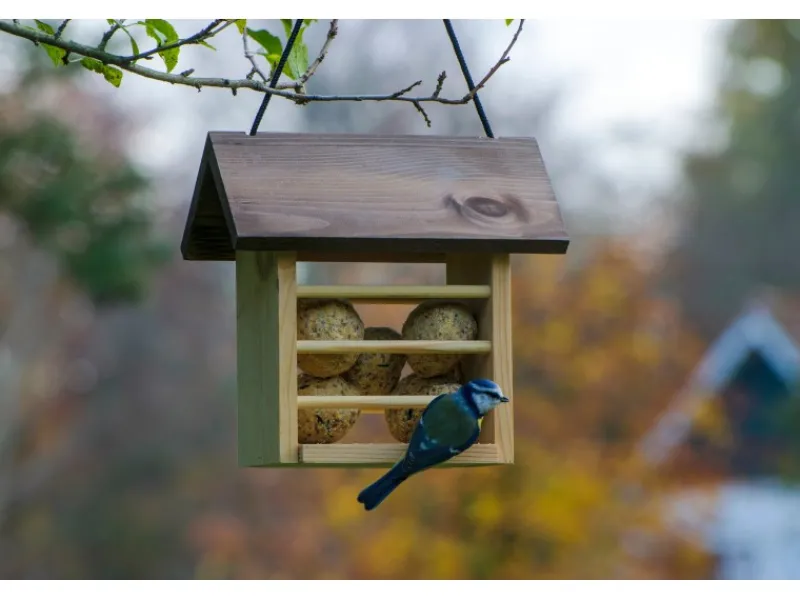 Mit der reißfesten Kordel können Sie den Meisenknödelhalter einfach überall aufhängen. Ein Futterspender wie dieser ist eine praktische Alternative zu einem klassischen Vogelhaus. Die Herstellung in europäischer Produktion erfolgt in Handarbeit mit Fokus auf bester Qualität in der Verarbeitung. Die Außenmaße der Vogelfutterstation sind ca. 22 cm x 14 cm x 21 cm, bei einem Gewicht von ca. 0,6 kg.
