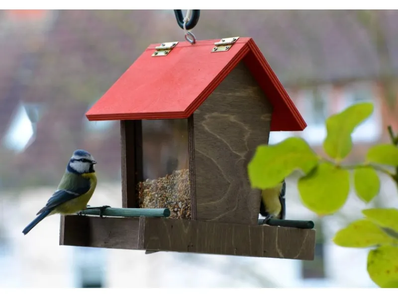 Das Vogelfutterhaus besteht aus FSC®-zertifiziertem Kiefernholz aus nachhaltiger Forstwirtschaft