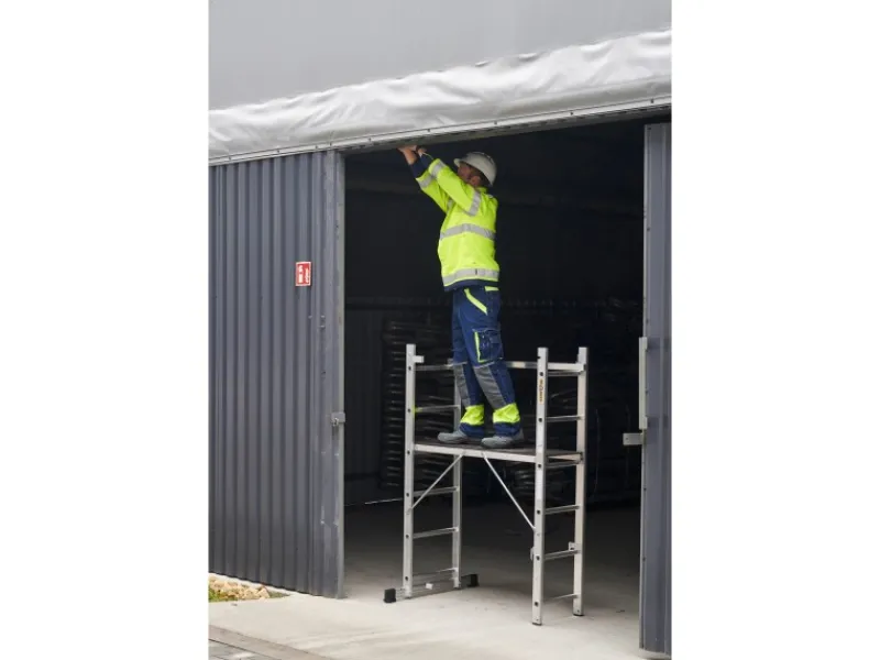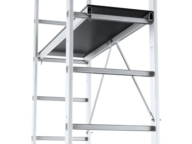 3in1-Kleingerüst: Arbeitsgerüst, Anlegeleiter und freistehende Leiter