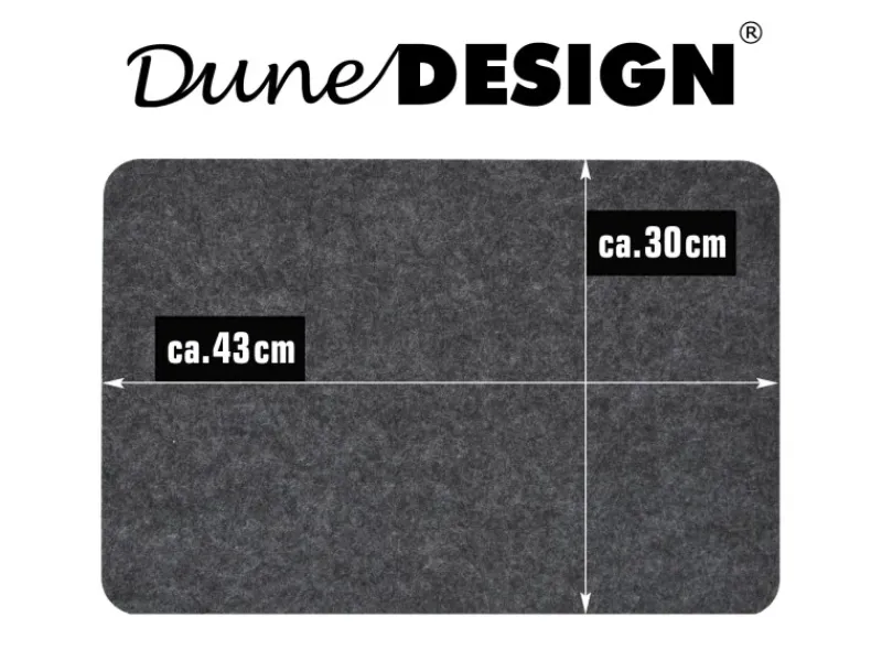 Die DuneDesign Platzsets aus Filz sind besonders pflegeleicht, wirken aber gleichzeitig edel und elegant – ohne den typischen „Plastik-Look“. Die Teller-Platzmatten verzaubern Ihren Tisch in eine moderne, stilvolle Tafel.
