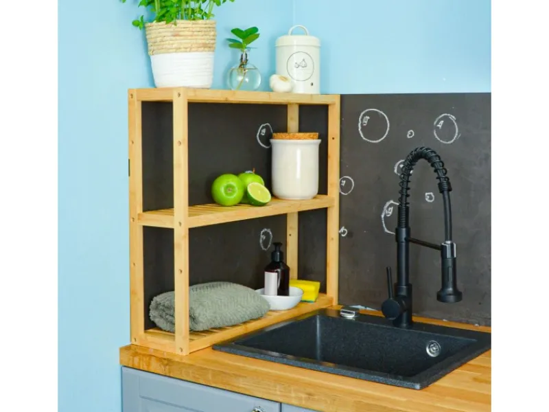 Egal, ob Du ein Wandregal oder eine freistehende Ablage suchst: Das kleine Regal holt jede Menge Stauraum aus Bad und Küche.