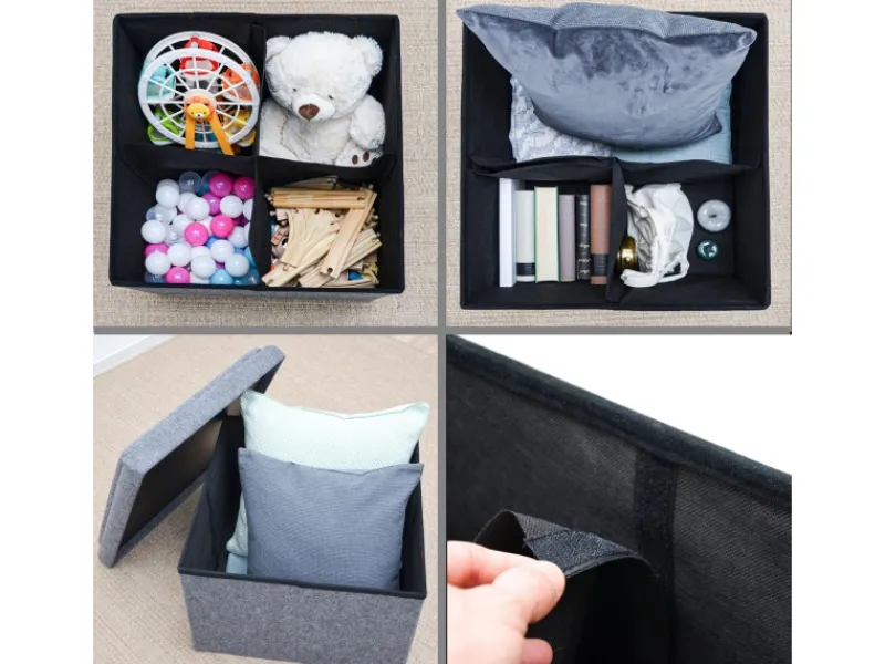 Durch flexible Trennwände mit Klettverschluss kann die Box in 4 Teile unterteilt werden.