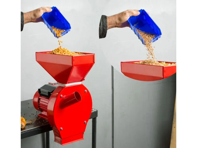 Bei der EBERTH Getreidemühle handelt es sich um ein elektrisch betriebenes Gerät zum zermahlen und schroten von nicht ölhaltigen Getreidearten. Ideal geeignet zum Schroten von Getreiden wie Weizen, Hafer, Gerste, Roggen sowie zur Herstellung von Futtermischungen. Das Gerät ist durch seine einfache und sichere Handhabung sowohl für den Einsatz in der Landwirtschaft als auch für den Gebrauch in Betrieben bestens geeignet.Der leistungsstarke 1100 Watt Elektro-Motor und das robuste Schrotmesser sorgen für eine hohe Durchsatzmenge von 240 kg/h und sind besonders langlebig. Reinigung des Siebes und austauschen bzw. schärfen des Mahlmessers lässt sich das Gerät mit wenigen Handgriffen auseinander- bzw. zusammenbauen. Im Lieferumfang sind vier Siebe mit unterschiedlicher Lochgröße enthalten.Top FeaturesPROFESSIONELL: Ob landwirtschaftlicher oder weiterverarbeitender Betrieb, die zur Tischmontage vorgesehene Schrotmühle dient dem professionellen Bedarf, die Getreidemühle eignet sich ideal zur Verarbeitung von nicht ölhaltigen Getreiden, Gewürzen und KaffeeVIELSEITIG: Dank der hochwertigen Klinge und den unterschiedlichen Siebgrößen ist die EBERTH Schrotmühle zum Mahlen fast aller Körner und Getreide-Sorten geeignet, z.B. Weizen, Hafer, Gerste, Roggen, Quinoa, Kichererbsen, Mais, Reis sowie HirseQUALITÄT: Die Getreidemahlmaschine verfügt über ein robustes Schrotmesser, welches bei Bedarf einfach ausgetauscht werden kann. Der zuverlässige 1100 Watt starke Elektromotor sorgt für eine hohe Durchsatzmenge von 240 kg/h und ist für lange Einsätze geeignet4 SIEBE: Im Lieferumfang der elektrischen Getreidemühle sind vier Siebe mit 2, 3, 4 und 5 mm Lochgröße enthalten. Die Siebe können einfach und schnell getauscht werden. Über die Lochgröße bestimmen Sie den MahlgradBIO UND CLEVER: Mit der Getreidemühle kann die eigene Ernte gleich weiterverarbeitet werden. In den großen Trichter wird eine angemessene Menge Körner eingefüllt. In der seitlichen runden Öffnung werden ganze getrocknete Maiskolben eingegeben, um diese vollständig zu Pulver zu verarbeitenDatenblatt- Kapazität: 240 kg/h- Leistung: 1100 Watt- Netzspannung: 230 V / 50 Hz- Gewicht: 17 kgLieferumfang- 1x 1100 Watt Getreidemühle- Bedienungsanleitung