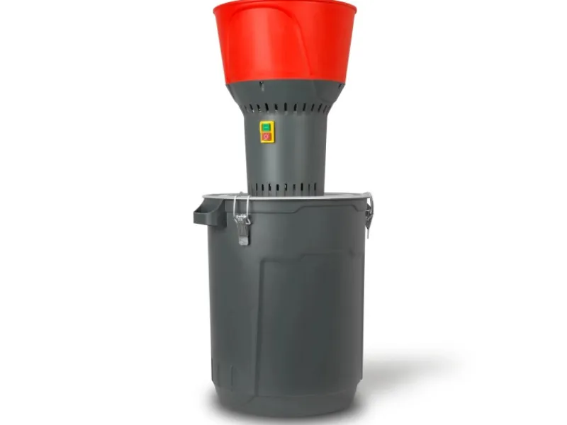 Der leistungsstarke 1300 Watt Elektro-Motor und das robuste Schrotmesser sorgen für eine hohe Durchsatzmenge und sind besonders langlebig. Der Einfülltrichter fasst 13 Liter und das Fassungsvermögen des Vorratsbehälters beträgt 50 Liter. Der Vorratsbehälter verfügt über 2 seitliche Handgriffe für einen bequemen Transport.