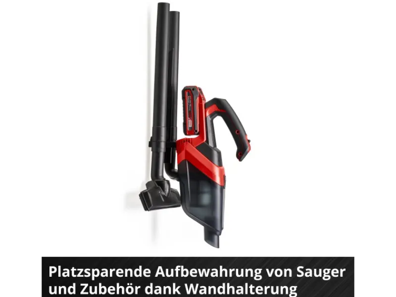 Der Staubfangbehälter verfügt über ein Fassungsvermögen von 600 ml und kann einfach per Knopfdruck entleert werden. Durch die integrierte Wandhalterung ist eine platzsparende Aufbewahrung gewährleistet. Der 1 kg leichte Handsauger liegt dank ergonomischer Bauform und Softgripflächen angenehm und leicht in der Hand. Der integrierte Schmutzfilter kann unter fließendem Wasser gereinigt und weiterverwendet werden, nachdem er vollständig getrocknet ist.