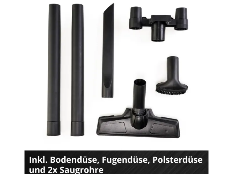 Die Polsterdüse eignet sich für Polster, Autositze und Stoffe. Mit der 26 cm langen Fugendüse können auch schwer erreichbare Stellen ohne große Mühen gereinigt werden. Mit Hilfe der zwei im Lieferumfang enthaltenen Saugrohre (Gesamtlänge 70 cm) kann der handliche Akku-Handsauger auch als Bodenstaubsauger und damit bequem in einer aufrechten Haltung eingesetzt werden.