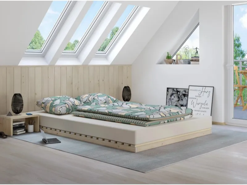 Multifunktionales Bett oder LattenrostNaturprodukt Holz… logisch!Beschreibung:Vielseitig nutzbares Bett oder Lattenrost – ganz ohne Metall!Die Leisten werden nicht verschraubt, sondern mit stabilen Holzdübeln an den Seitenteilen befestigt.So bleibt die gesamte Konstruktion metallfrei und bietet ein natürliches, angenehmes Schlafgefühl – ganz ohne störende Metallteile.Die Konstruktion kann als Lattenrost in allen Betten mit einer Liegefläche von 140 x 200 cm verwendet werden.Sie besteht aus 21 fein geschliffenen Latten aus unbehandeltem Fichtenholz – ideal für gesundes Schlafklima.Bitte beachten Sie: Bei kleineren Varianten ist das Seitenteil nicht durchgehend, sondern besteht aus zwei Teilen, die durch Holzdübel miteinander verbunden werden.Optional kann das Lattenrostbett mit passender Matratze kombiniert werden. Da die Matratze lediglich aufgelegt wird, empfehlen wir Anti-Rutschmatten (nicht im Lieferumfang enthalten) für besseren Halt.Maße:Liegefläche: 140 x 200 cmSeitenteile: ca. 50 x 25 mm20 Leisten: ca. 60 x 20 mmMittelleiste: ca. 100 x 20 mm