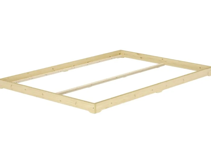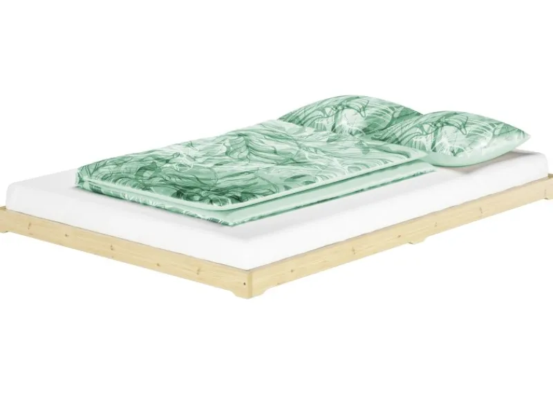 Extra niedriges Einzelbett aus Massivholz in unbehandelter Fichte/TanneEin völlig naturbelassenes Einzelbett aus NadelholzLiegefläche: 90×200 cmNaturprodukt Holz … logisch!Sehr flaches Einzelbett, unbehandeltBettrahmen aus massiver Fichte oder Tanne, fein geschliffenGut geeignet für AllergikerKann bei Bedarf leicht selbst farbig gestrichen werdenDetails & KonstruktionSeitliche Auflageleiste zur Aufnahme des Rollrostes (optionales Zubehör)Einfacher Aufbau Schraubensatz im Lieferumfang enthaltenAußergewöhnlich flach ideal für niedrige Decken, Loftbetten oder DachschrägenPuristisches Möbeldesign perfekt für Japandi-Style-FansFreiliegende Matratze sorgt für bessere Belüftung und angenehmes SchlafklimaMatratze liegt auf dem Rahmen, nicht darin Seitenteile sind niedrigerMaßeAußenmaß: ca. 95 x 205 cmRahmenhöhe: nur ca. 9 cmStärke der Seitenwände: ca. 2,6 cmEinlegetiefe für Rollrost/Matratze: ca. 5,5 cmVerbindung: Dübel und SchraubeStatische Belastung: 120 kgOptionales ZubehörEinfacher Rollrost aus Nadelholz am Gurtband
