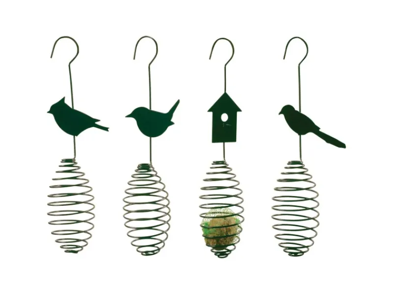 Diese Esschert Design Futterfeder bietet Platz für einen Meisenknödel. Die offene Struktur ermöglicht es den Vögeln die Knödel leicht und von allen Seiten zu erreichen. Hierdurch können auch mehrere Vögel gleichzeitig von den Meisenknödeln fressen.