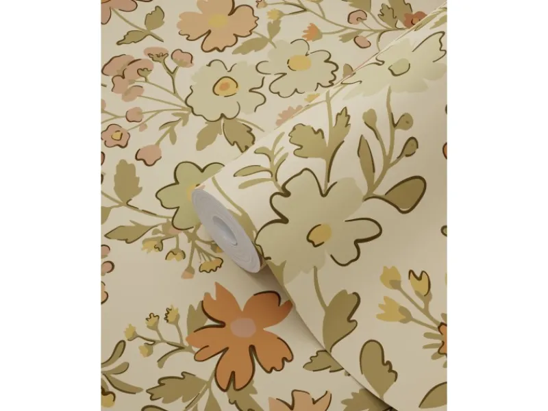 Diese fröhliche Tapete mit Blumen in Ockergelb und Beigebraun lässt jedes Mädchenherz höher schlagen. Kombiniert mit hellen Farben und natürlichen Materialien, entsteht eine angenehme und freundliche Atmosphäre, die zum Spielen, Träumen und Lachen einlädt.Maße, Rapport und Musterversatz Die Maße dieser Tapete sind 50 x 900 cm (Breite x Länge). Der Rapport ist 50 (gerader Ansatz). Das heißt, dass das Motiv sich alle 50 cm wiederholt und das Muster der einzelnen Tapetenbahnen auf gleicher Höhe geklebt werden muss.Tapezieren Das Anbringen dieser Vliestapete ist einfach und unkompliziert: nachdem der Vlies-Kleister direkt auf die Wand aufgebracht wurde, kann die Tapete angesetzt und anschließend glattgestrichen werden. Eventuelle Überstande können mit einem Cuttermesser entfernt werden. Beim Tapezieren wird kein Tapeziertisch benötigt und die Tapete ist auch nach Jahren restlos trocken abziehbar. Für das beste Tapezierergebnis empfiehlt ESTAhome den professionellen Wallpro PRO-301 Tapetenkleister. Vorbereitungstipp: Verhindere Probleme mit der Haftung deines Tapeten, indem du vorher testest, ob deine Wandoberfläche stark saugend ist. Nimm dazu einen feuchten Schwamm und befeuchte einen kleinen Teil der Wand. Wenn der feuchte Bereich innerhalb weniger Sekunden verschwindet, ist die Wand sehr saugfähig. In diesem Fall empfehlen wir, ein Grundiermittel zu verwenden, um die Saugfähigkeit zu verringern. ESTAhome empfiehlt hierfür die WALL PRO-401 Tapetenprimer.Sofort startklar! Am einfachsten ist es, direkt auch der benötigte Tapetenkleister und ein Wallpro PRO-933 Tapezierset zu bestellen. Dieses Tapezierset enthält alle Tapezierwerkzeuge, die beim Tapezieren von Vliestapeten benötigt werden. Diese Artikel können über das Suchfenster auf der Amazon Seite schnell gefunden und bestellt werden. So wird das Tapezieren zum Kinderspiel!