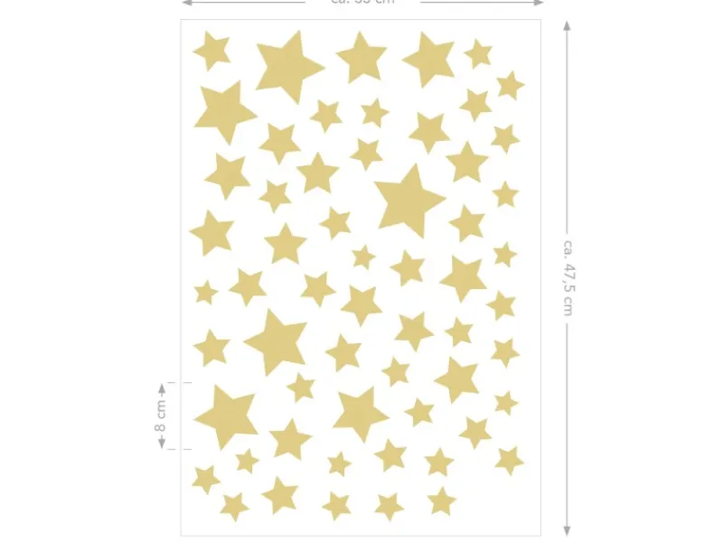 Die Maße dieses Wandtattoos sind 33 cm x 47,5 cm (Breite x Länge). Dieses Wandtattoo enthält 57 Aufkleber.