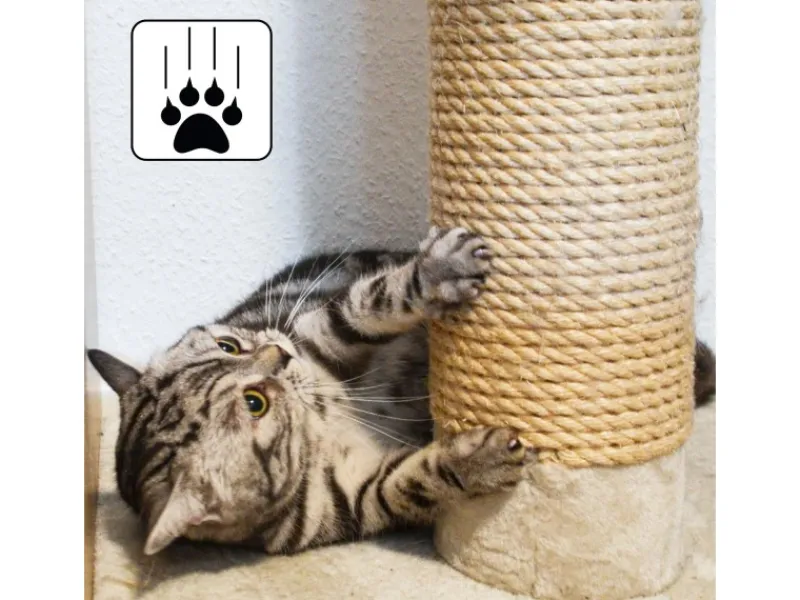 Mit der Katzenkratzsäule aus Natursisal sieht der ramponierte Kletterbaum im