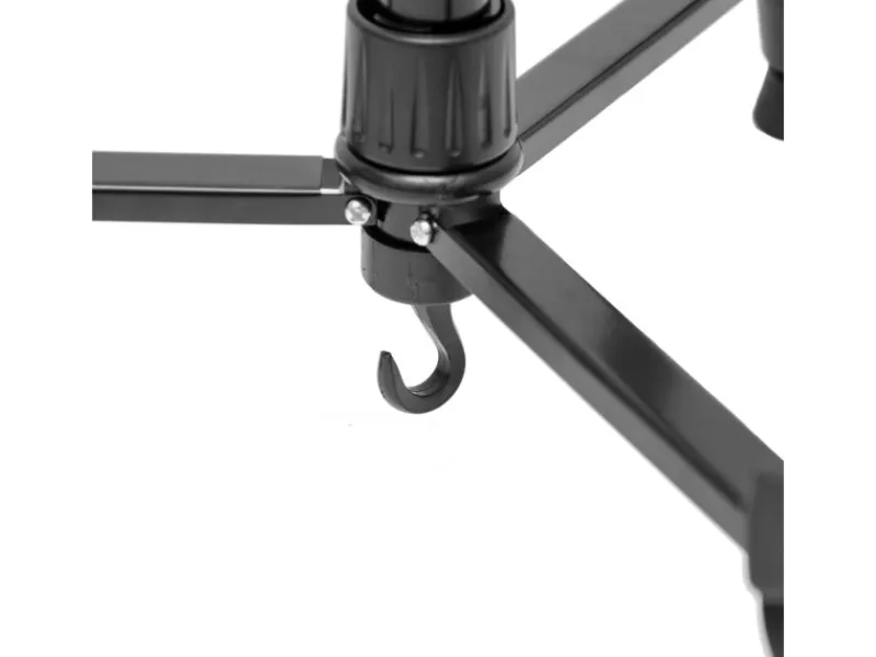 – Schwarzes, dreibeiniges Aluminium-Gestell mit Gummi-Füßen