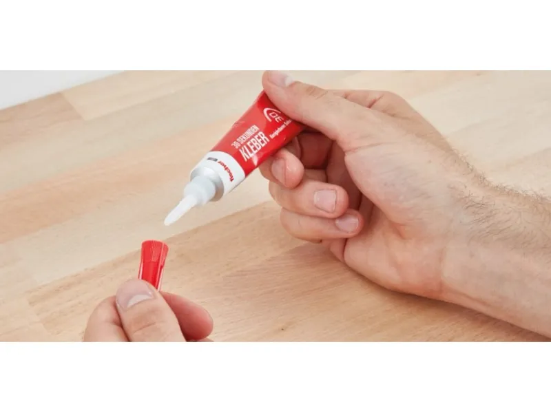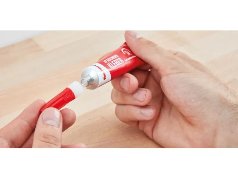 Der Kleber ist wasserbeständig und extra stark. Durch seine verlangsamte Reaktionszeit sind zusammengefügte Teile noch korrigierbar.