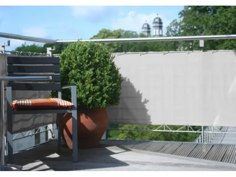 Die Verkleidung besteht aus schwerem Polyesterstoff (280 g/m²) und ist daher besonders stabil. Durch die Teflon-Beschichtung ist die Balkonbespannung zudem wasser- und schmutzabweisend. So dient sie ebenfalls als Regen- und Windschutz für Ihren Balkon oder Ihre Terrasse.