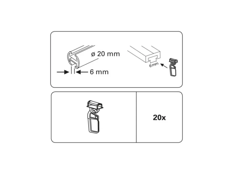 Geeignet für Gardinenschienen und -stangen mit einer Laufkanalbreite von 6 mm