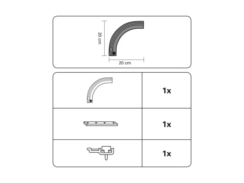 Dieser praktischer 1-läufige Rundbogen mit Anreißloch eignet sich zur Verlängerung von 1-läufige, 2-läufige und 3-läufige Aluminium-Vorhangschienen. Gefertigt aus hochwertigem, pulverbeschichteten Aluminium ermöglicht der 90°-Winkel vielfältige Gestaltungsmöglichkeiten. Im Lieferumfang sind ein Verbinder und ein Endfeststeller enthalten.
