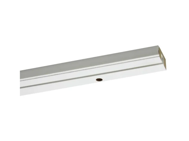 Die Schiene aus Holzwerkstoffen ist mit weißem Kunststoff ummantelt und für die Deckenmontage bereits vorgebohrt. Die einläufige Schiene eignet sich für die Befestigung eines Gardinenlaufs. Eine Blende kann durch einfaches Aufclipsen am Profil der Vorhangschiene befestigt werden.