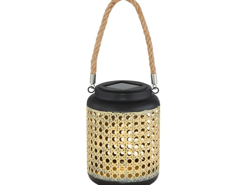 Solaraußenleuchte aus schwarzem Metall und braunem Bambus