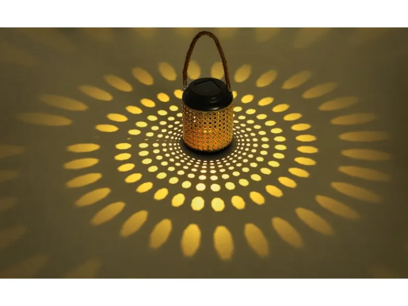 Diese zylinderförmige Globo LED-Solaraußenleuchte Laterne in Bambusoptik zum Hängen oder Stellen aus braunem Metall (ø 12 cm) eignet sich wunderbar für Ihren Garten, Ihre Terrasse oder Ihren Balkon. Durch das Bambusseil kann die 30 cm große Solaraußenleuchte sowohl in hängender als auch in stehender Position bewundert werden. Die zahlreichen Kreise im Metall werden durch das angenehm warmweiße Licht (3000 Kelvin) der solarbetriebenen LED-Leuchtmittel wunderschön auf den Boden oder die Wand projiziert. Außerdem können Sie sie mithilfe des inkludierten Schalters nach Belieben ein- oder ausschalten. Mit dieser Solarlampe können Sie in Ihren Außenbereich für eine stimmungsvolle Atmosphäre sorgen.