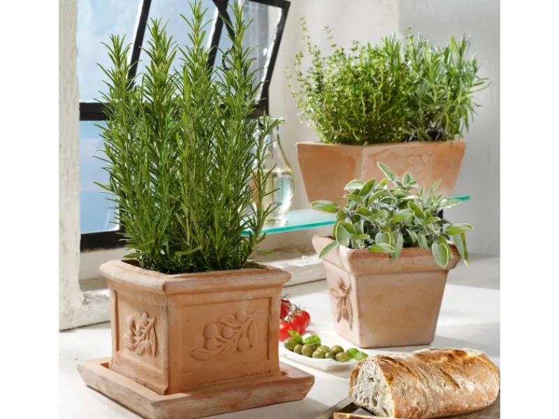 Italienscher Kräutermix: Auswahl an Einzeltöpfen mit verschiedenen Kräutersorten