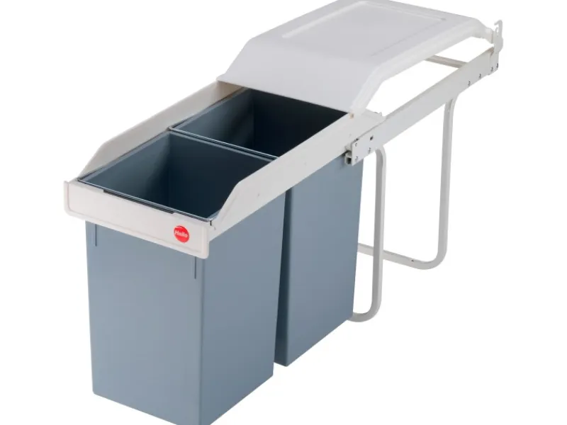 Bauen Sie dieses Mülltrennungssystem in Ihre Küche ein, um den vorhandenen Platz optimal auszunutzen. Die 2 herausnehmbaren Inneneimer bieten viel Platz und lassen den Müll nach Bedarf sortieren. Nutzen Sie es zum Beispiel für Haus- und Biomüll. Der Hailo Einbau-Abfallsammler Multi Box ist unauffällig und sofort aufnahmebereit in Unterschränken ab 30 cm Breite. Sie können das System je nach Bedarf rechts, links oder mittig montieren. Die Plastikbeutel lassen sich am Eimerrand gegen Verrutschen befestigen. Das Gehäuse ist aus korrosionsfest beschichtetem Stahlblech und der Deckel ist aus Kunststoff.