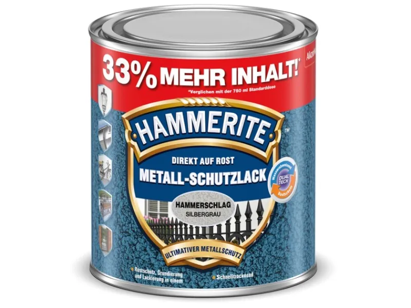 Direkt auf Rost streichbar. Mit der Hammerite-Haftgrundierung außerdem optimal auch auf Nicht-Eisenmetallen anwendbar.