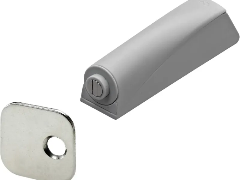 Der Hettich Türöffner Push-to-open ist ein Türöffnungssystem für grifflose Möbeltüren. Der Türöffner ist für federlose Scharniere und vorliegende, innenliegende Türanschläge sowie Mittelwandanschläge vorgesehen. Zum Anschrauben für Türbreiten von 300 – 600 mm und Türhöhen von 300 – 900 mm. Mit selbstklebender Gegenplatte in Kunststoff grau.