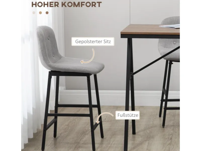 Verwandeln Sie Ihren Raum in ein einladendes Esszimmer mit dem 5-teiligen HOMCOM-Bartisch-Set. Diese Essgruppe bietet Ihnen eine stilvolle und gemütliche Lösung für tägliche Mahlzeiten, Spieleabende oder Arbeitsstunden. Das moderne Industrie-Design der Essgruppe fügt sich nahtlos in jeden Raum ein und schafft eine warme Atmosphäre. Ideal für kleine Räume, bietet es zusätzliche Sitzgelegenheiten und verwandelt Ihr Zuhause in einen Ort der Geselligkeit und Entspannung.