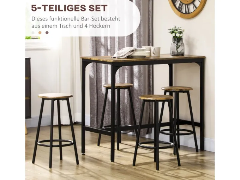HOMCOM Bartisch mit Barhocker Set 5-tlg. im Industriedesign Rustikal-Braun