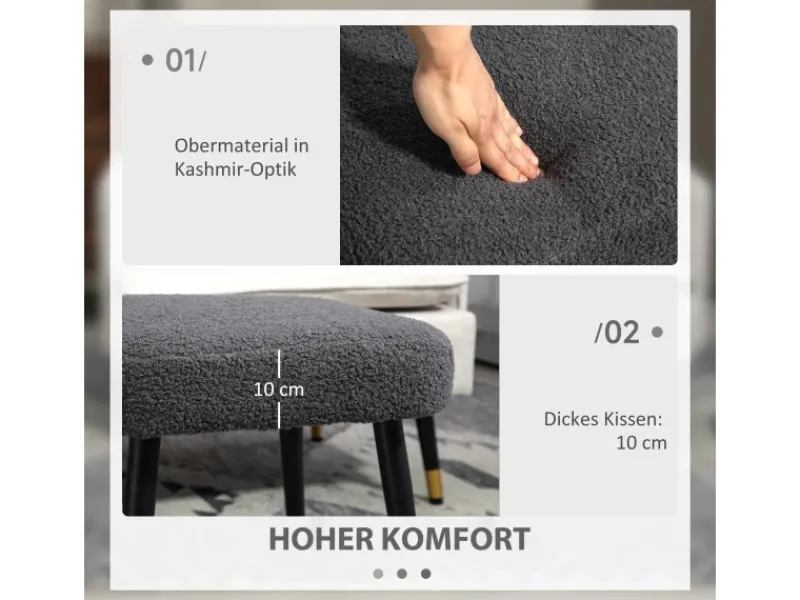 Verleihen Sie Ihrem Zuhause einen Hauch von Eleganz und Gemütlichkeit mit dem HOMCOM Hocker. Ob als Fußhocker oder zusätzliche Sitzgelegenheit – dieser Sitzhocker überzeugt durch seine weiche Polsterung und das luxuriöse Obermaterial in Kaschmir-Optik. Perfekt als Akzentsessel in einer Zimmerecke oder als bequeme Sitzgelegenheit für Gäste. Machen Sie es sich gemütlich und genießen Sie stilvollen Komfort mit dem HOMCOM Hocker.