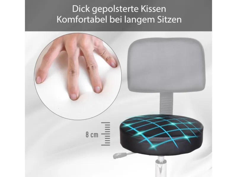 Entdecken Sie den ultimativen Komfort mit unserem runden Salonhocker! Mit einem Durchmesser von 35 cm und einer höhenverstellbaren Sitzfläche von 43 bis 55 cm ist dieser Hocker perfekt für Massagen, Schönheitssalons, Arztpraxen und mehr. Erleben Sie ergonomisches Design, das Ihre Arbeit erleichtert und Ihre Kunden begeistert. Ein Must-Have für jeden Profi, der Wert auf Qualität und Bequemlichkeit legt. Gönnen Sie sich und Ihren Kunden das Beste!