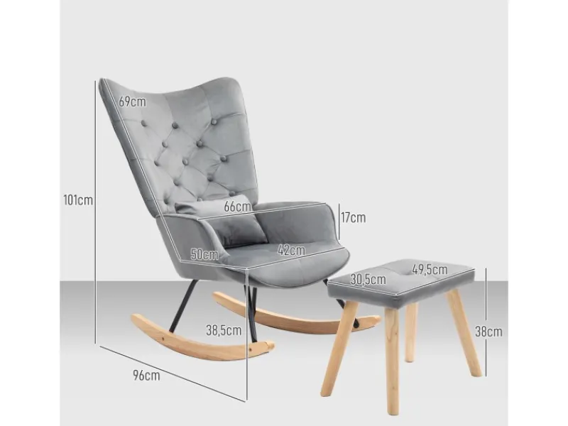 Technische Details Maße des Schaukelsessels 96L x 66B x 101H cm Fußhocker 49,5L x 30,5B x 38H cm