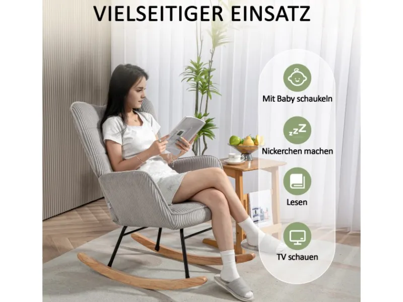 ● Die dicke Polsterung des Schaukelsessels sorgt für ein hervorragendes Sitzerlebnis