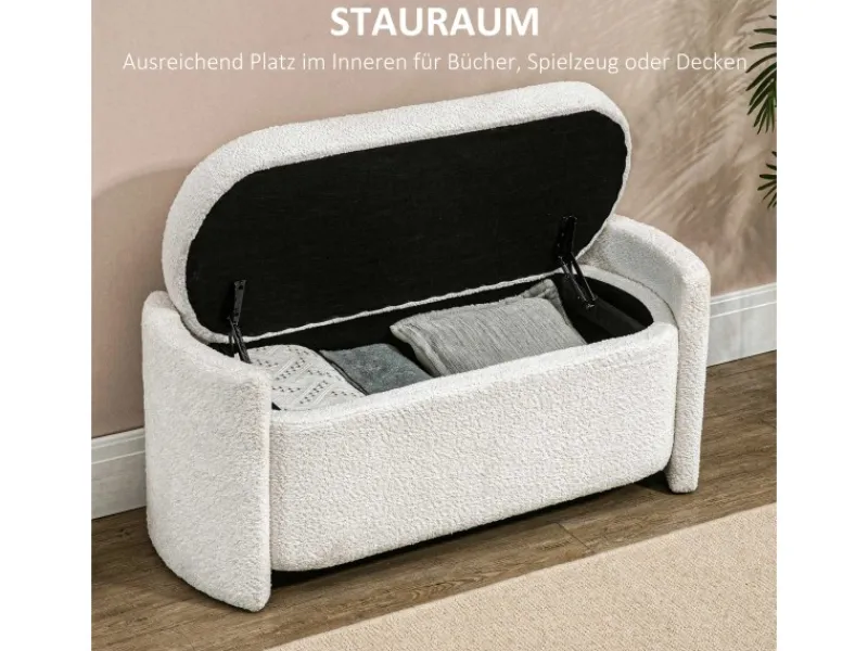 Wenn Sie zusätzlichen Stauraum benötigen und gleichzeitig eine dekorative Sitzbank benötigen, ist diese HOMCOM-Sitzbank genau richtig für Sie. Das elegante Design passt zu Ihrem Stil und bietet Ihnen oder Ihren Gästen zusätzlichen Sitzplatz. Der Stauraum der Polsterbank unter der Sitzfläche ermöglicht es Ihnen, Dinge zu verstauen, die bereits in Ihrem Raum einen Platz haben, wie zusätzliche Decken oder Handtücher. Gestalten Sie Ihr Zuhause gemütlich mit HOMCOM.