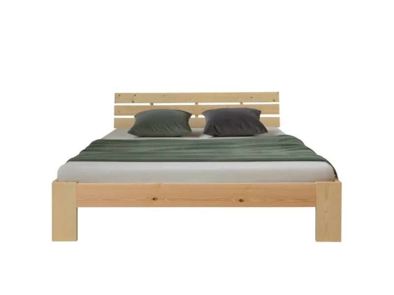 Das Bettgestell samt Kopfteil ist aus massiver Kiefer, in klar lackiert.