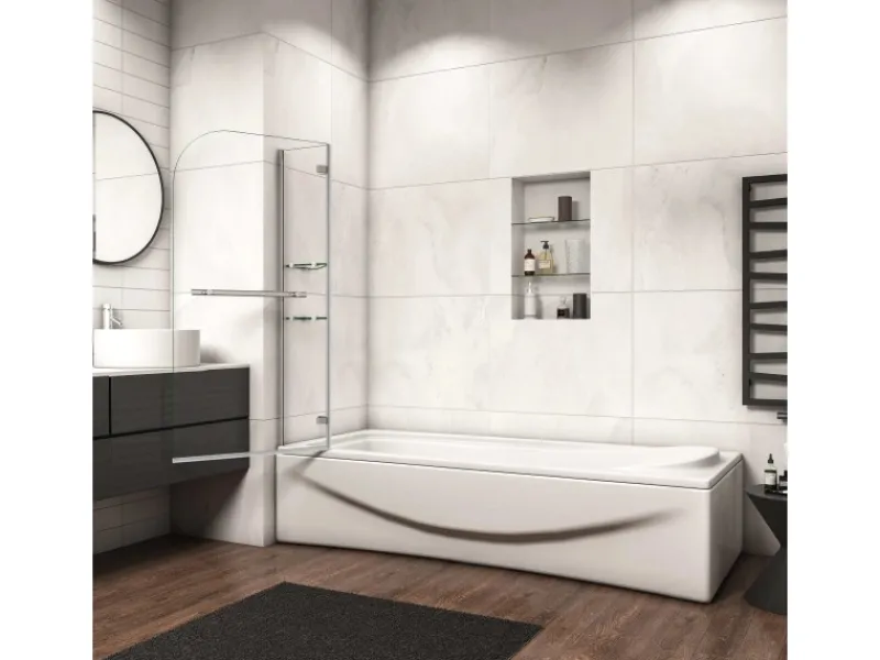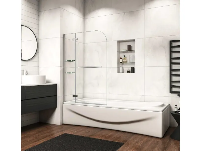Enthält zwei Eckregale aus 6mm Sicherheitsglas,