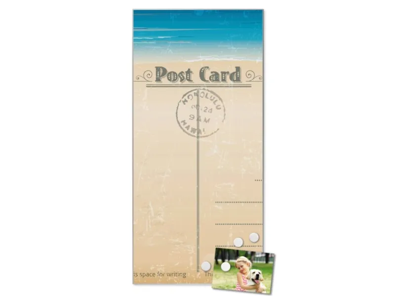 Die Magnet Pinnwand besteht aus silber lackiertem Stahl in der Größe 37 x 78cm. Die aufgebrachte Motivfolie ist mit einem Schutzlaminat überzogen, wodurch sie UV-Resistent und stoßfest ist.