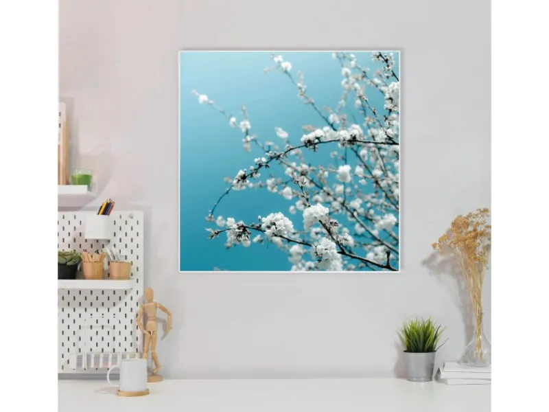 Das Motiv weiße Kirschblüten wird mit einem Schutzlaminat überzogen und ist lösungsmittelfrei.
