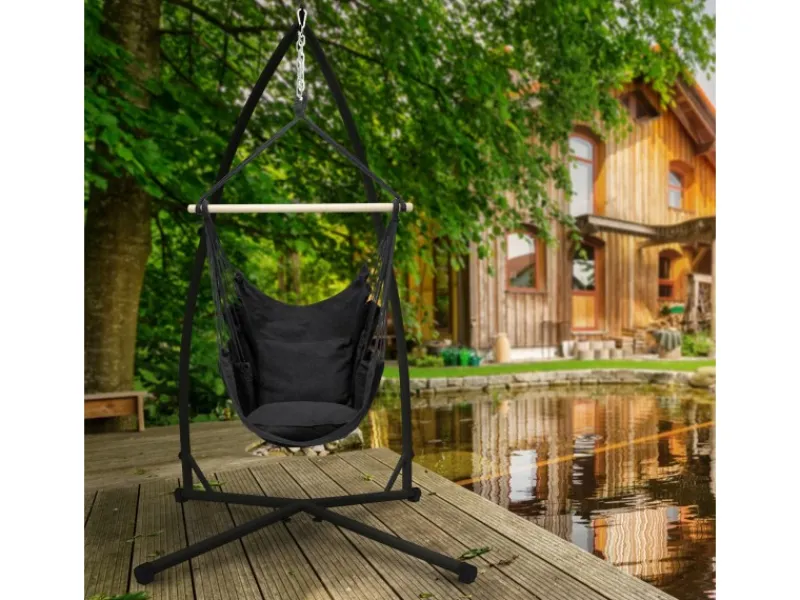 Das ECD Germany Gestell für den Hängesessel kann an unzähligen Plätzen verwendet werden, wie zum Beispiel im Garten, Wohnzimmer, auf dem Balkon oder auf der Terrasse. Dank dem stabilen Ständer aus Metall kann der Einsatzplatz des Gestells jederzeit gewechselt werden. So können Sie es entweder an einer sonnigen Stelle oder an einem schattigen Platz benutzen. Das Hängesessel-Gestell von ECD Germany sorgt für entspannte Stunden und eine sommerliche Stimmung.