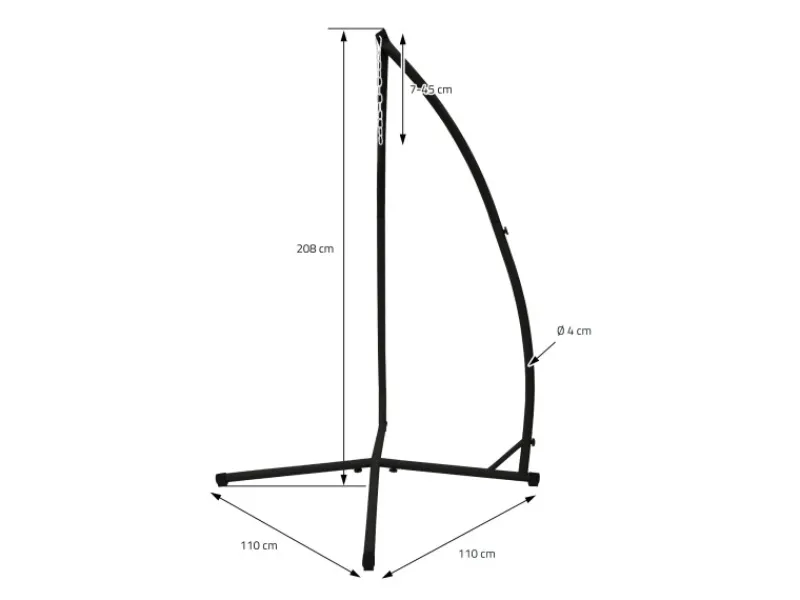 Mit dem leicht gewölbten Bogengestell, wird der ECD Germany Hängestuhlständer zum echten Blickfang. Das Gestell verfügt über zwei stabile Kreuzstandfüße und ist aus wetterfestem, pulverbeschichtetem Metall hergestellt, so dass die Standfestigkeit und Sicherheit garantiert ist.