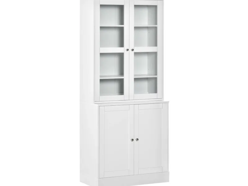 Hot HOMCOM Bücherschrank 178,5 cm mit Glastür 6 Fächern Küchenschrank Weiß