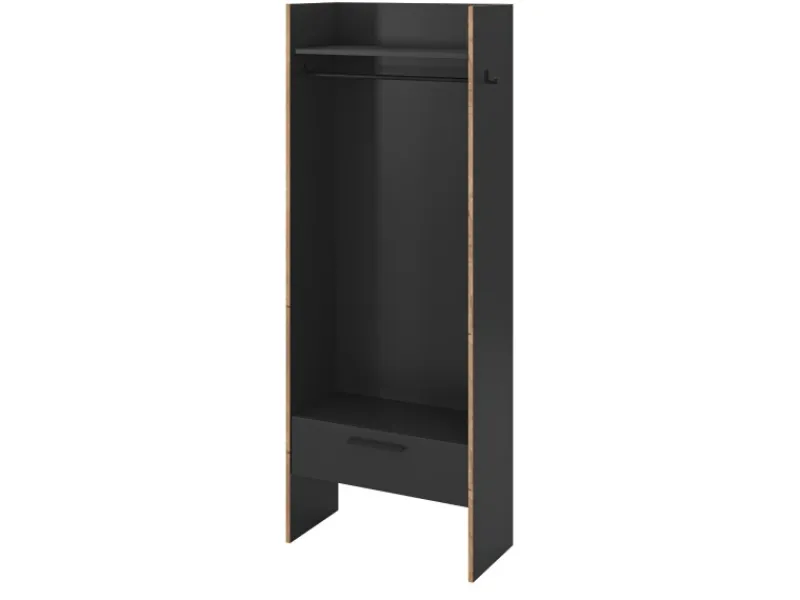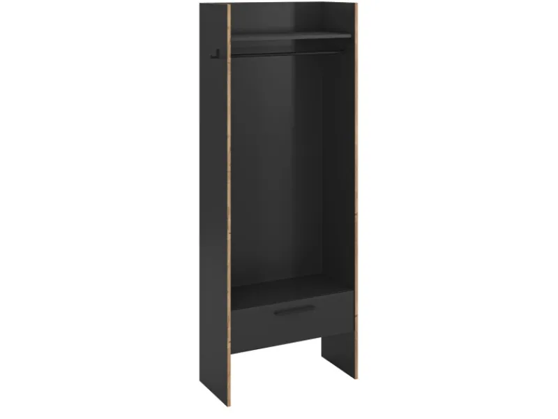 1 Schubkasten, 1 Hutablage, 1 Kleiderstange, 2 seitliche Haken
